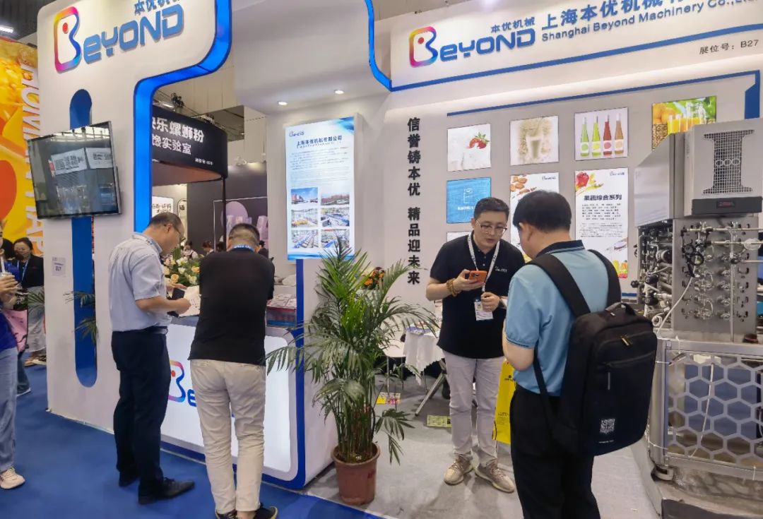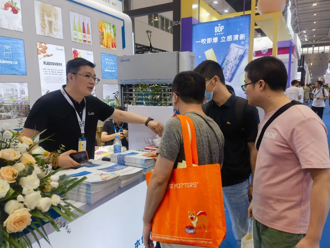本優團隊憑借專業技術優勢和高端產品性能,吸引了飲料行業眾多企業的駐足咨詢,本優機械展位前的參展者絡繹不絕,大家積極前來洽談合作。