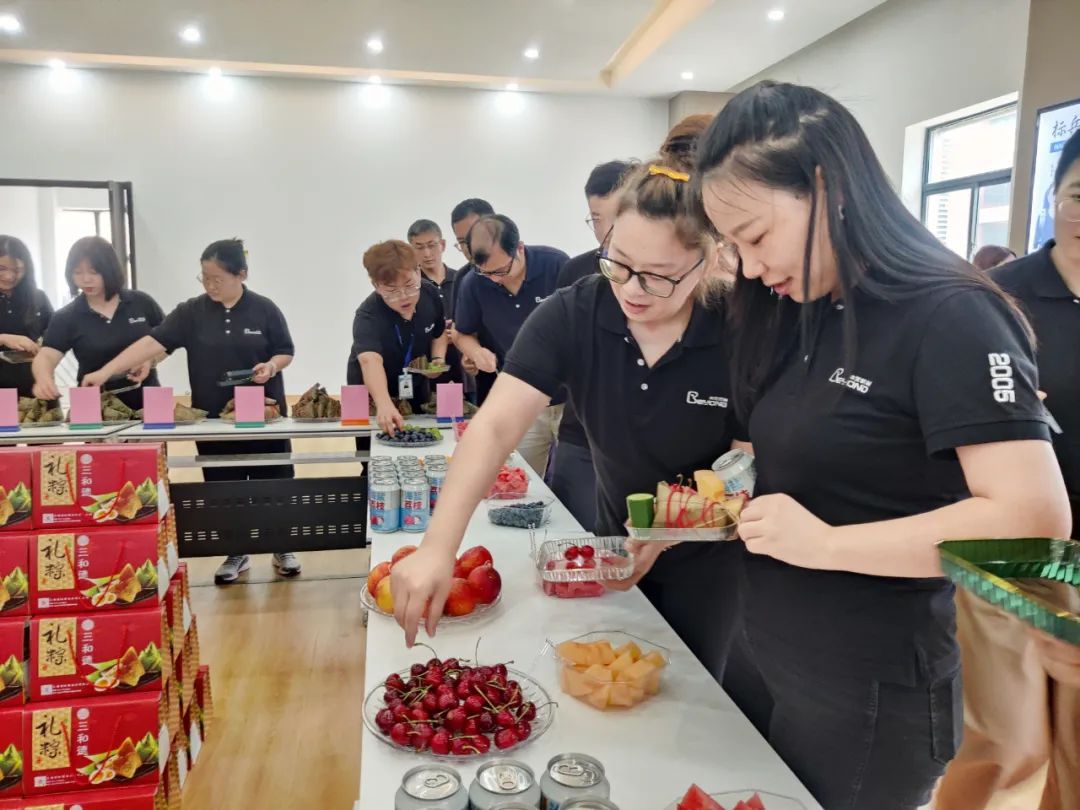 隨后,公司給所有員工發放了節日福利——粽子禮盒,一粒粒粽子經過大家的手有了溫度,給他們帶去節日的溫暖和問候。