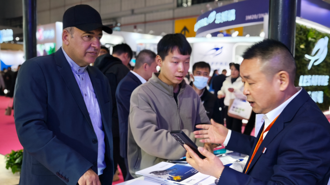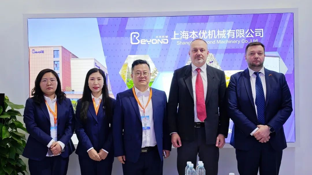 白俄羅斯駐滬總領事前來與我們會面,總裁胡金保專程帶領白俄駐滬總領事安德烈耶夫·安德烈和經貿領事 哈勞科·康斯坦丁參觀我們的展位,并與我們暢聊現下的經濟形勢行業前景及今后的相關合作事宜。