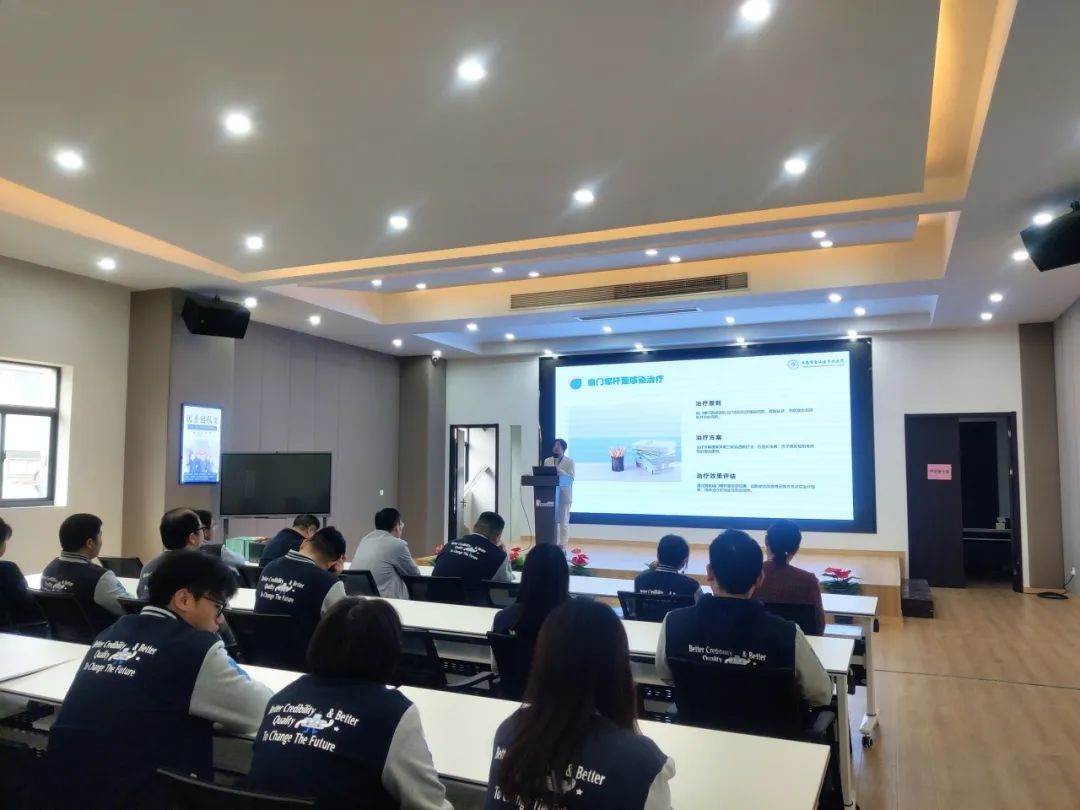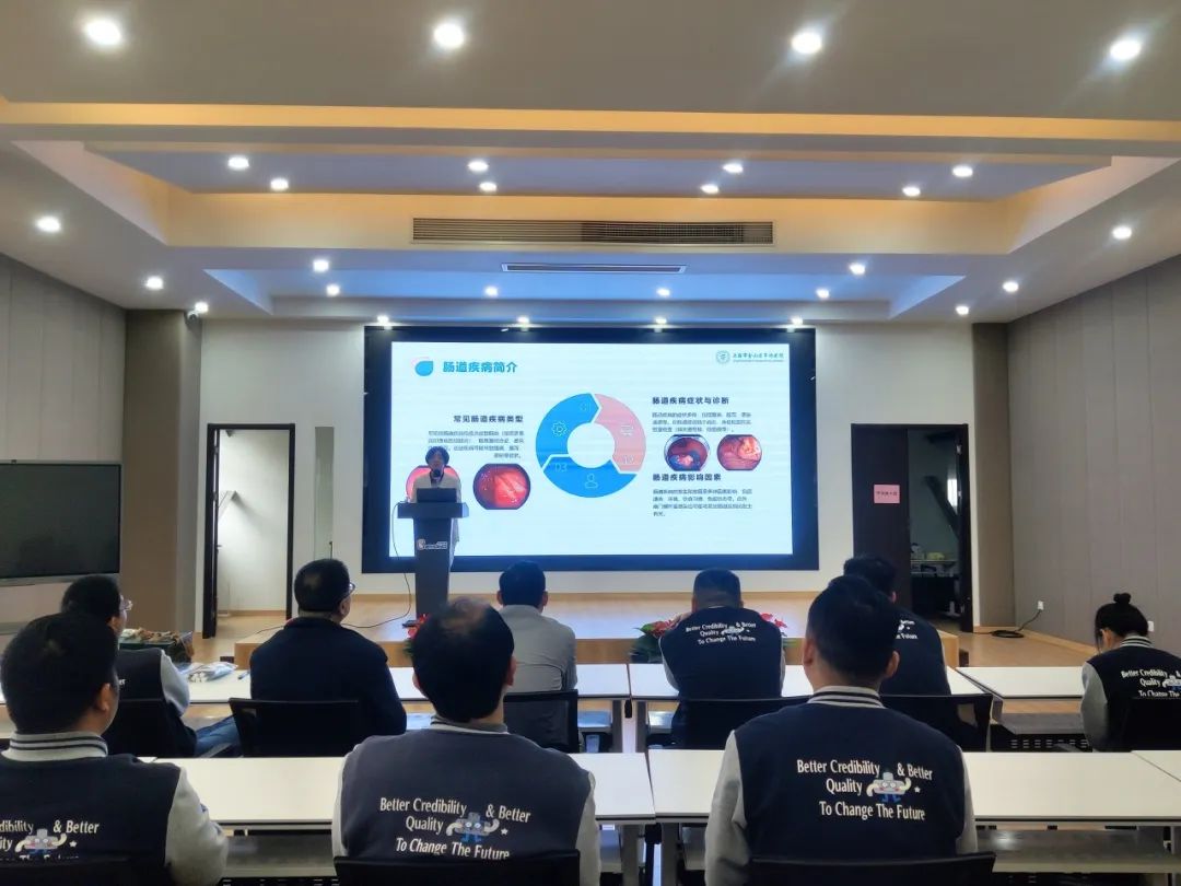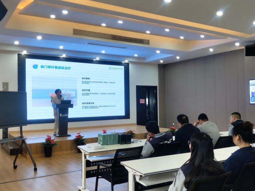 講座還特別邀請了消化內科主任醫師楊秀紅主任親臨現場,楊主任憑借深厚的理論基礎和豐富的臨床經驗,深入淺出地向在場的員工們講解幽門螺桿菌感染與胃腸疾病分類預防方法。