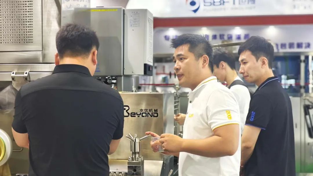 展會首日,本優展臺人頭攢動,吸引了大批專業觀眾的目光。作為行業內的高新技術企業,我們展示了12T/H蒸汽直噴殺菌機、50L發酵雙聯體、實驗室成套機組、雙道打漿機等產品,充分展示了公司在乳品飲料、果蔬汁、生物發酵/制藥以及綜合食品等領域的先進理念和技術實力。