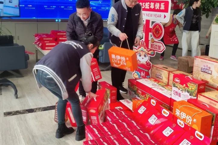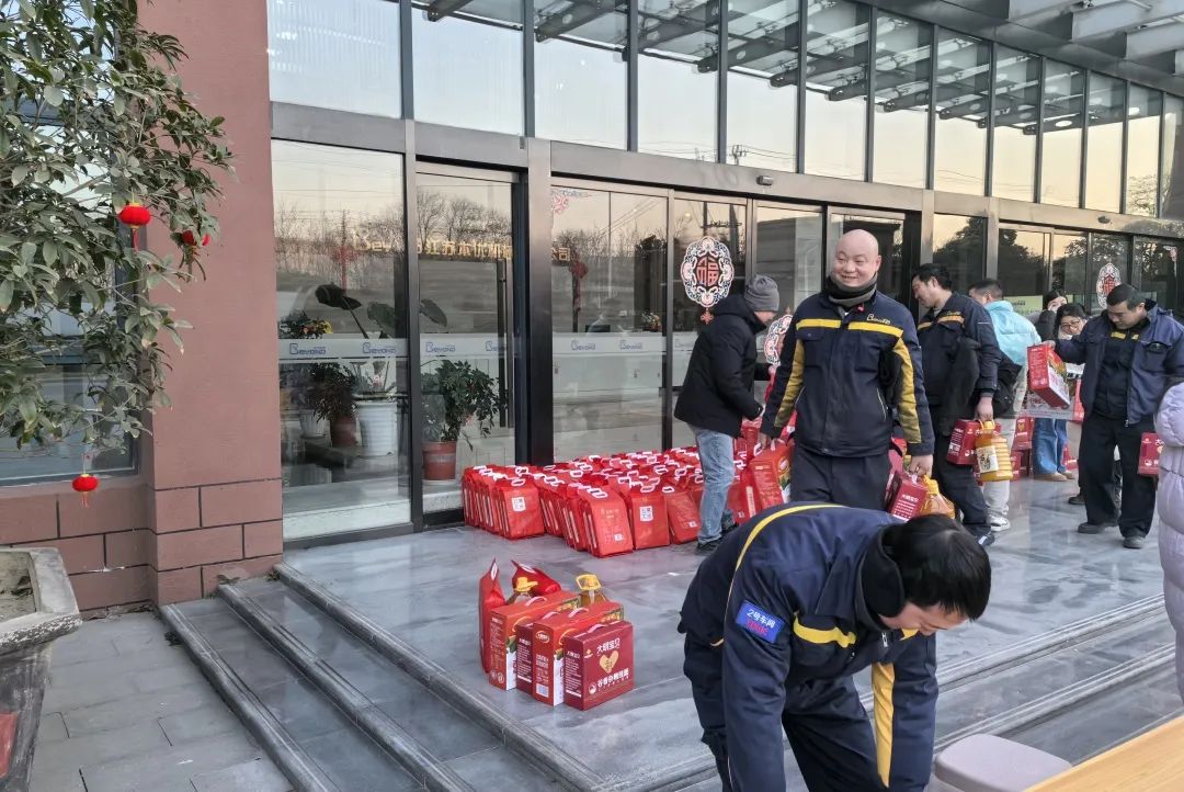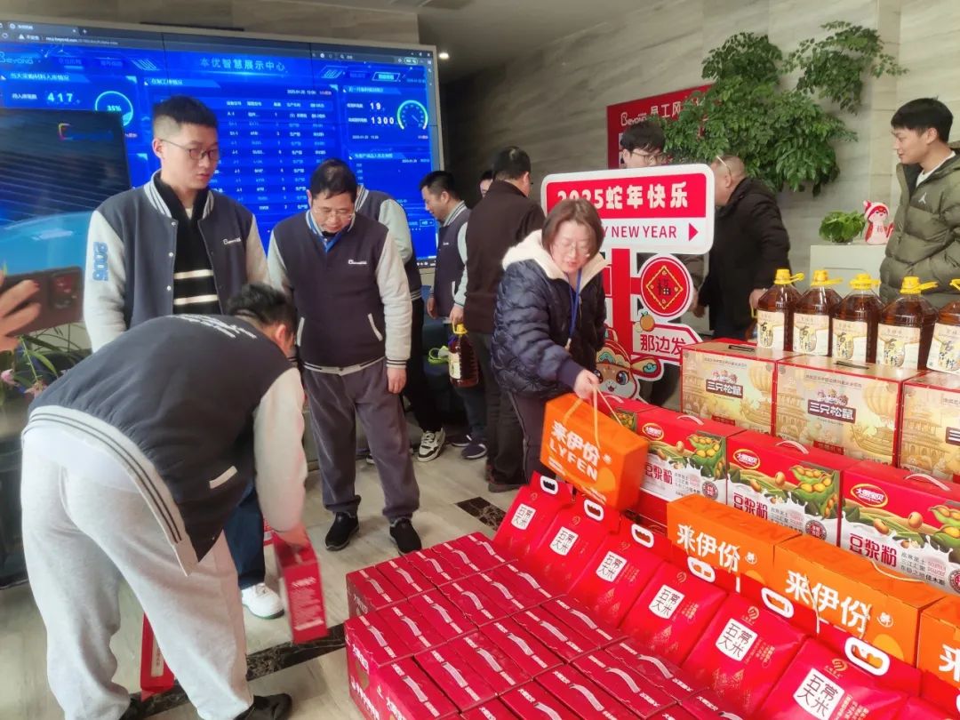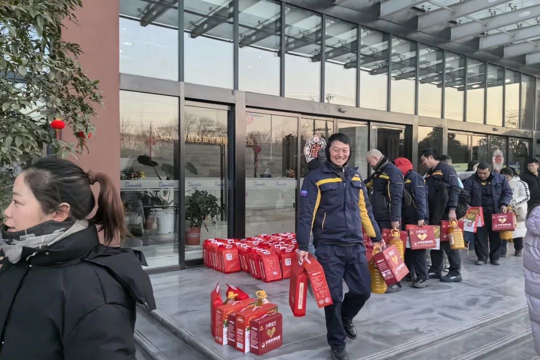 各部門員工紛紛前來領取新年伴手禮,一箱箱暖心的禮品正有序地發放到員工手中,現場氣氛熱烈,沉甸甸的禮品捧在手里,笑在臉上,暖在心頭,員工們的幸福之情溢于言表。